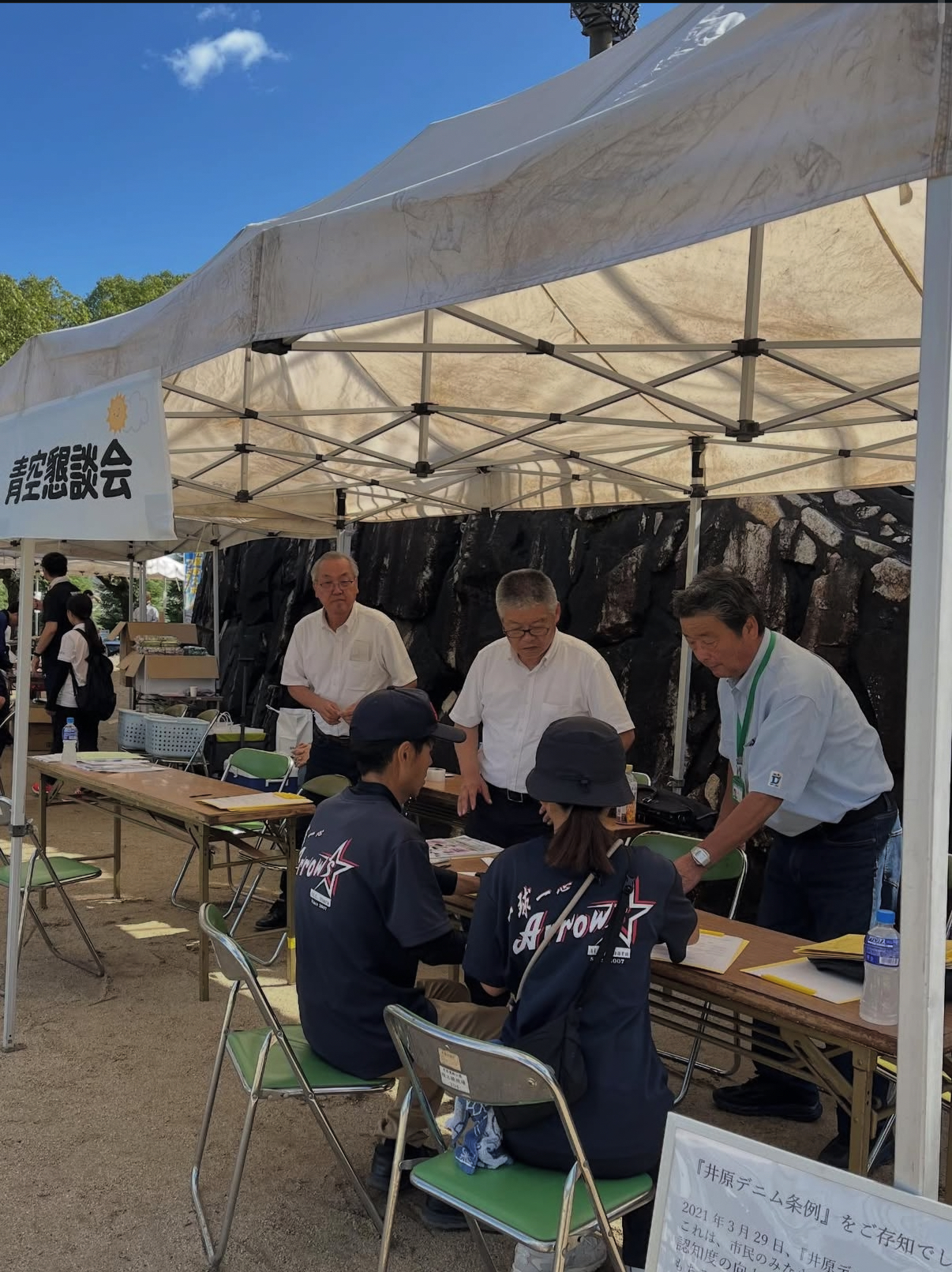井原スポーツフェスティバルに市議会議員6人が参加して、青空懇談会を開催しました。多くの方々が来てくださいました。