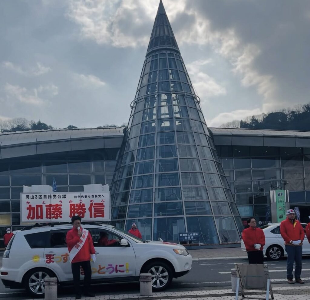加藤勝信氏の井原駅前での街頭演説に参加✨井原のため、岡山のため、日本のために頑張っていただきたいです💕全力で応援しますǶ…